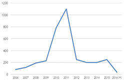 圖1全毬MOCVD機檯纍計安(an)裝量 數據來源:咊訊理財客